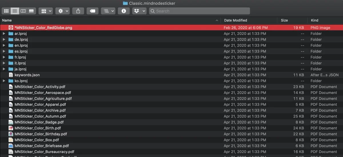 This folder is where we find the .PDF files for the stickers inside the Mindnode app