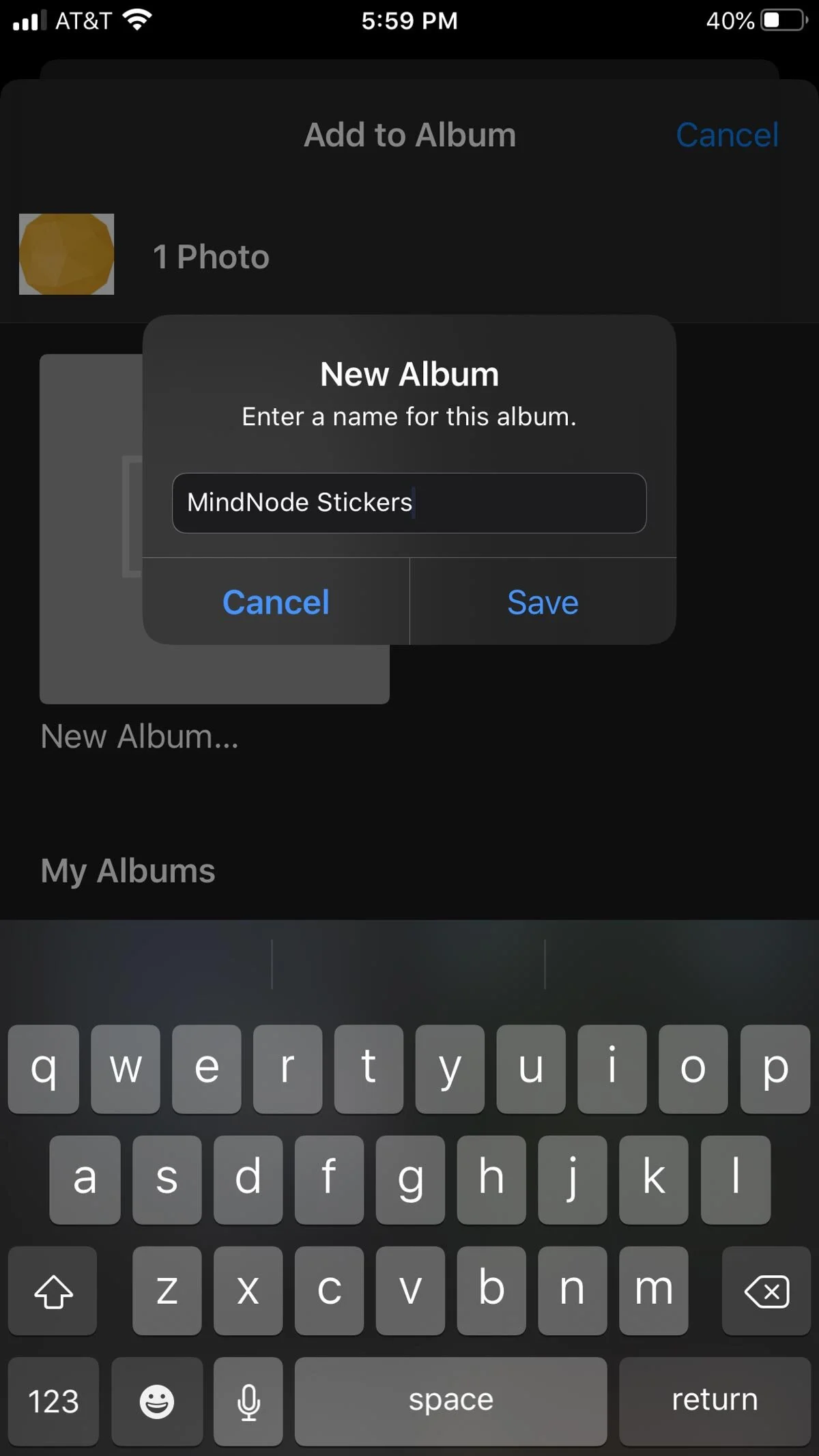2. Add that image to an album on your Photos app called Mindnode Stickers.