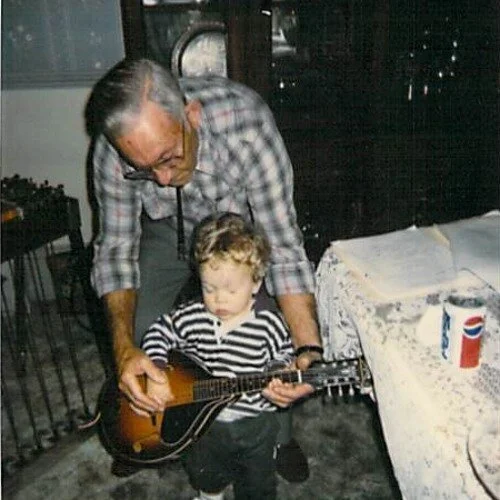 My mom has this iconic picture of her uncle Rossie teaching me to play his mandolin when I was only 2 or 3 years old.