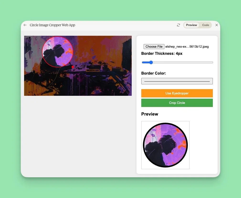 Finally, I asked: "Can we add a 'Crop' button that creates the final circular image with the specified border?"